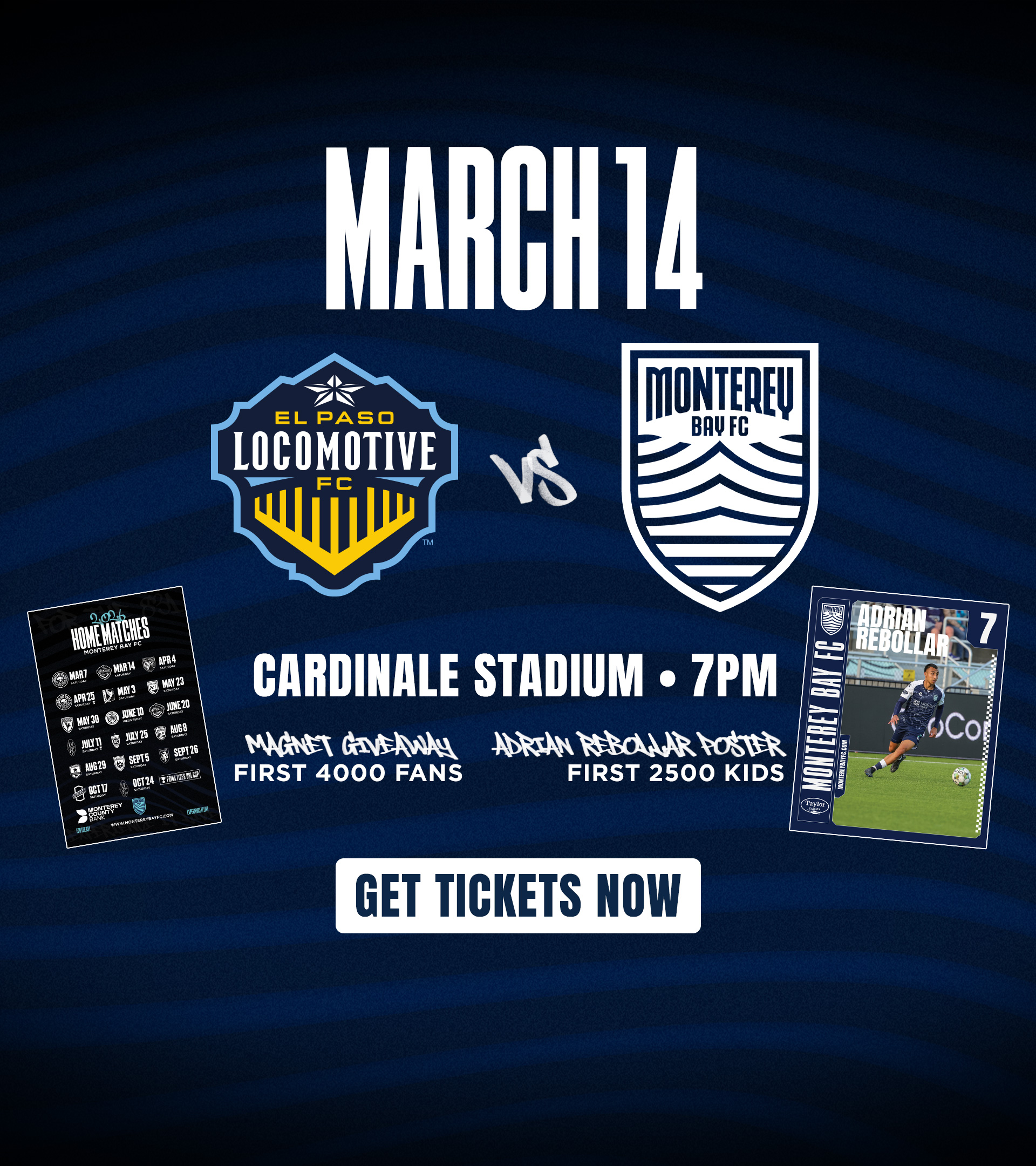 TICKET CENTRAL SEASON MEMBERSHIPLearn More PREMIUM EXPERIENCESLearn More GROUP TICKETSLearn More MEET THE TEAM LATEST NEWS Monterey Bay Acquires Haitian Midfielder Belmar Joseph on Loan from Swiss Super League Club FC Sion Home Monterey Bay Signs 19-Year-Old Mexican Youth International Goalkeeper Fernando Delgado Ahead of 2026 Campaign Home Monterey Bay Acquires Argentinian Midfielder Facundo Canete via Transfer from MLS NEXT Pro side Carolina Core FC Home read all the news » FOLLOW US @MONTEREYBAYFC