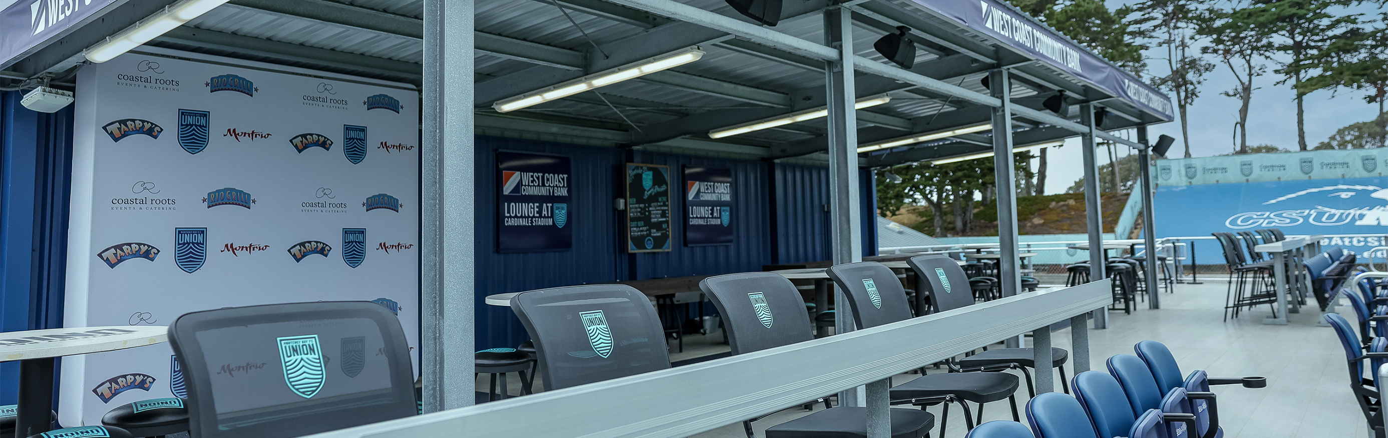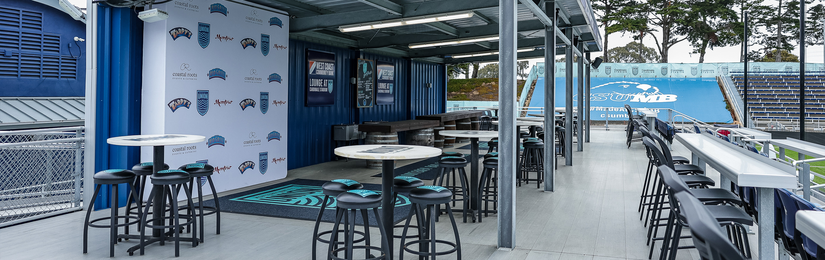 Much like sitting behind home plate at a baseball game, the West Coast Community Bank Lounge offers an exclusive view from right behind the West goal. Each guest receives two complimentary drink vouchers, along with delicious food catered throughout the match by Coastal Roots Catering Company.